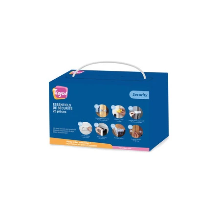 Ce coffret comprend toutes les protections nécessaires : – 12 caches prises qui sont compatibles à toutes prises européennes normalisées 2 pôles avec ou sans terre, elles se retirent uniquement avec la clé de sécurité fournie, donc impossible par une petite main. – 4 protège-coins pour meubles qui se fixent sur les coins de la table, de l’étagère, de l’armoire afin d’amortir les chocs et éviter à l’enfant de se cogner sur les angles pointus. – 6 bloques portes et tiroirs qui s’installent sur le dessus ou le côté des meubles pour éviter que les petits ne se fassent pincer les doigts. – 1 bloque porte en mousse dense et résistante pour amortir et empêcher le claquement de porte. – 3 loquets (1 mini souple + 1 souple + 1 spécial appareil ménager) qui s’installent sur les fermetures des placards, réfrigérateur pour en interdire l’accès.